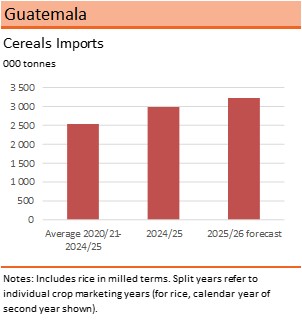 Cereal import requirements in the 2025/26 marketing year (July/June) are expected at 3.2 million tonnes, about 25 percent above the previous five‑year average. The expected high level of imports is primarily driven by strong demand for yellow maize by the feeding sector as well as by rising demand for wheat for human consumption.